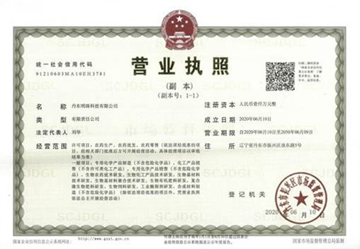 • 丹東明珠科技有限公司農藥產品的三證的更新